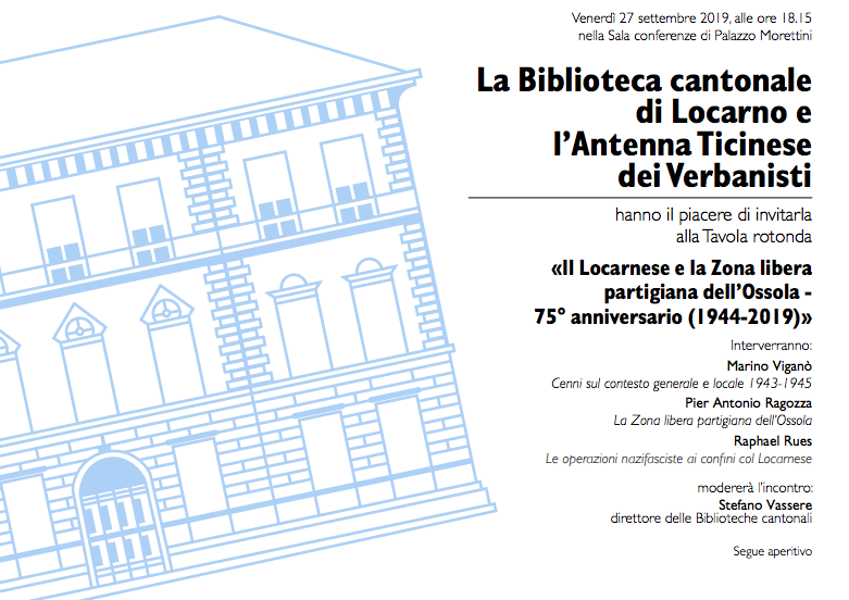 Riscontro sulla presentazione del 27.9.2019 a Locarno concernente il 75esimo anniversario della Repubblica Partigiana dell’Ossola.